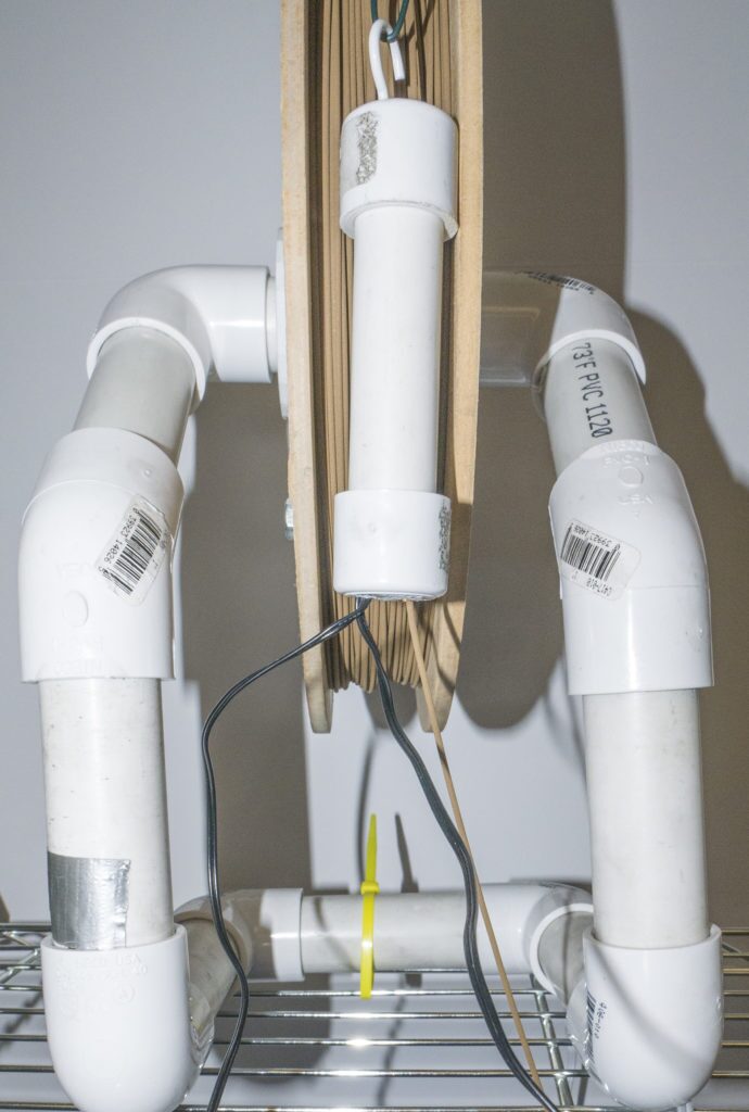 For best results, station the Filamet™ spool above the printer to minimize any bend of the filament as it comes off the spool. Hang the FilaWarmer so that the top of the warming tube is at the same level as the spool center hole.